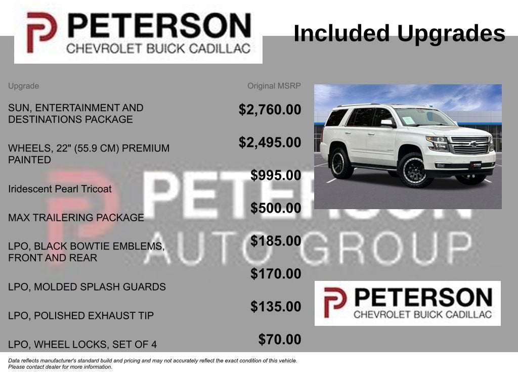 Chevrolet offers a strong steel safety cage, forward collision alert, rear cross-traffic alert, and OnStar automatic crash response, so you'll experience supreme confidence behind the wheel. Reward yourself with the security, space, and style only Tahoe LTZ can provide! Save this Page and Call for Availability. We Know You Will Enjoy Your PETERSON CHEVROLET Test Drive Towards Ownership! Call us today 208-323-5000 to schedule your VIP test drive!