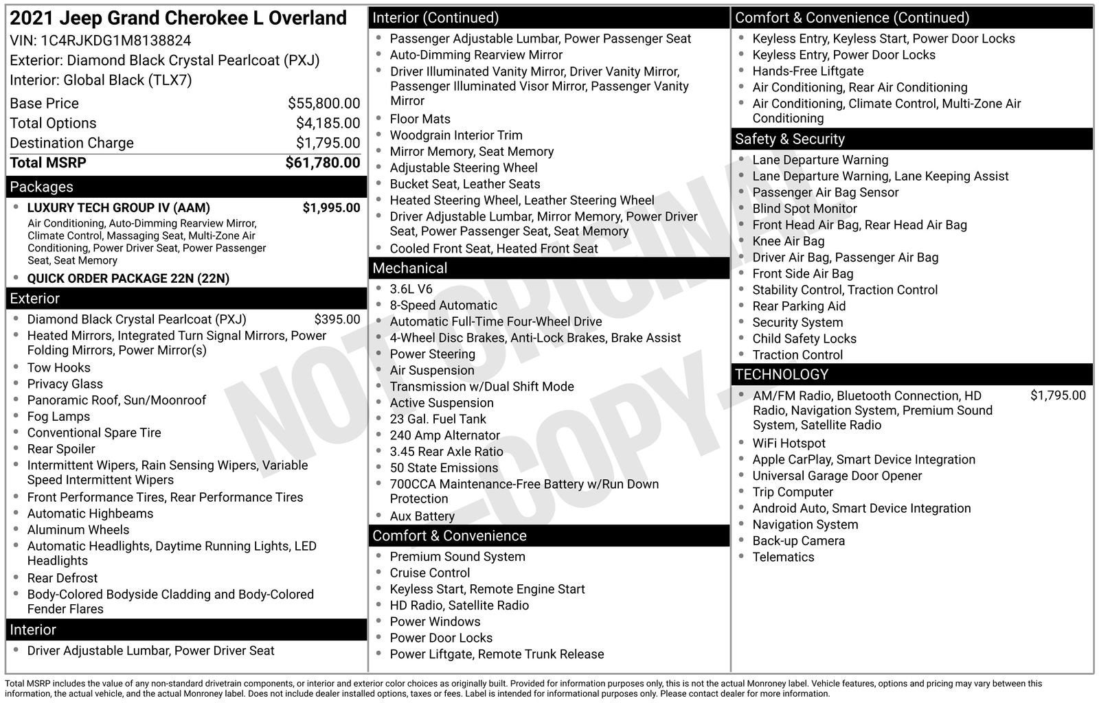 Recent Arrival! Styled in Diamond Black Crystal Pearl, our 2021 Jeep Grand Cherokee L Overland 4X4 with the Luxury Tech Pack is sure to impress! Powered by a 3.6 Liter Pentastar V6 providing 290hp connected to an 8 Speed Automatic transmission. This Four Wheel Drive SUV also boasts a Quadra-Lift air suspension and Selec-Terrain performance system to push your boundaries even farther, and it scores nearly 25mpg on the highway. Our Grand Cherokee L is great-looking, too, with exclusive bumpers, LED lighting, fog lamps, a dual-pane sunroof, heated power-folding mirrors, a hands-free liftgate, roof rails, and alloy wheels.