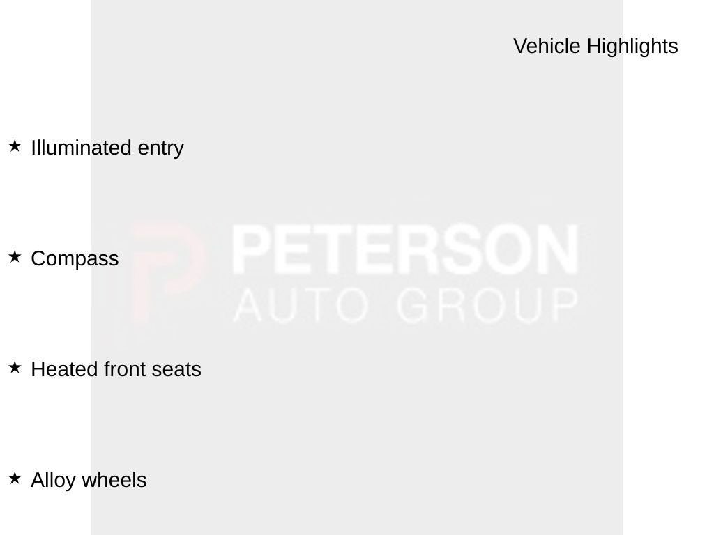- Illuminated entry - see what you’re getting into. Take away any potential surprises with illuminated entry. It lights the interior before you open the door, and stays on for a period of time after the door is closed making it easier to get in after dark, and to see if anyone might be lurking inside. Get added safety and convenience from illuminated entry.