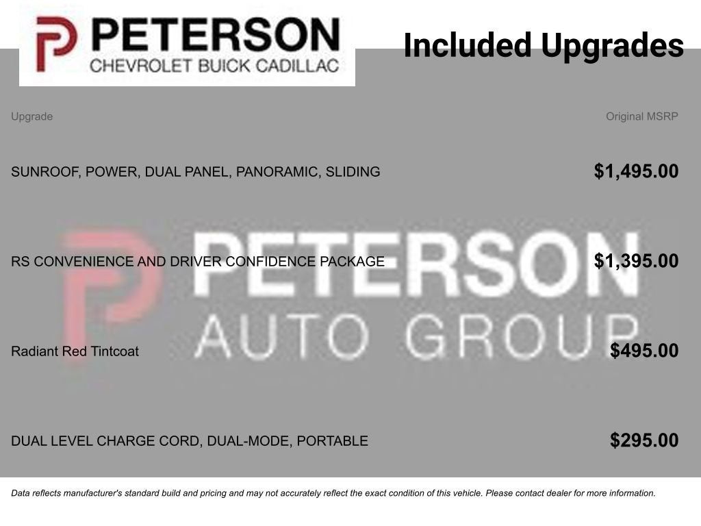 More Chevrolet technology from our Convenience & Driver Confidence Pack adds a head-up display, digital rearview mirror, adaptive cruise control, enhanced front/rear automatic braking, and HD surround vision to active blind-spot assistance, forward collision warning, lane-keeping assistance, and more. Plug in our Blazer EV RS, and put yourself in the driver's seat! Save this Page and Call for Availability. We Know You Will Enjoy Your PETERSON CHEVROLET Test Drive Towards Ownership! Call us today 208-323-5000 to schedule your VIP test drive!