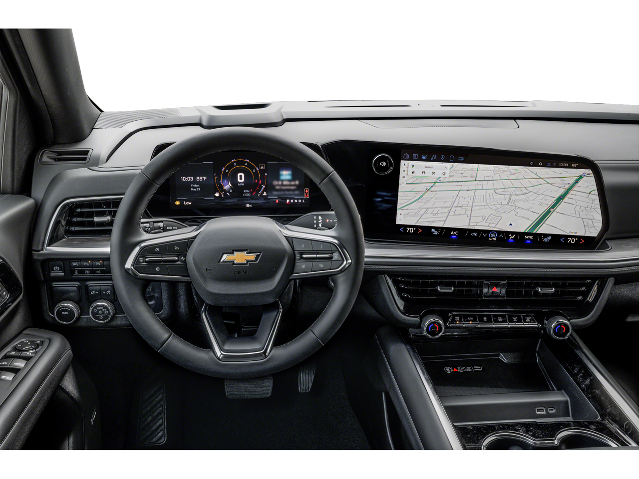 Enjoy a room with a view in our LT cabin, which rewards your family with heated leather power front seats, heated rear seats, flexible second and third rows, a heated steering wheel, tri-zone automatic climate control, keyless access/ignition, remote start, cruise control, and 12V/120V power outlets. The intelligent infotainment system can keep you connected with a 10.2-inch touchscreen, a 12-inch driver display, connected navigation, Bose audio, WiFi compatibility, voice control, wireless Android Auto/Apple CarPlay, wireless charging, and Bluetooth®.